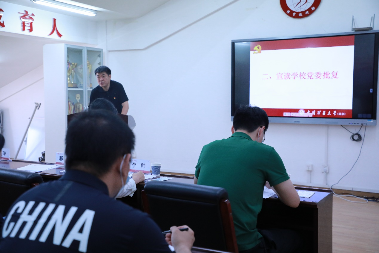 按照学校党委统一安排和部署,6月22日上午,体育教育研部直属党支部在107会议室召开党员大会,选举出席中共中国矿业大学(北京)第四次党员代表大会代表。校党委组织副部部长李帅、组织科科长陈旭出席大会,党支部23名正式党员参加会议,大会由直属党支部副书记体育教研部直属党支部召开党员大会——选举出席中共中国矿业大学(北京)第四次党员代表大会代表。杨三军主持会议。