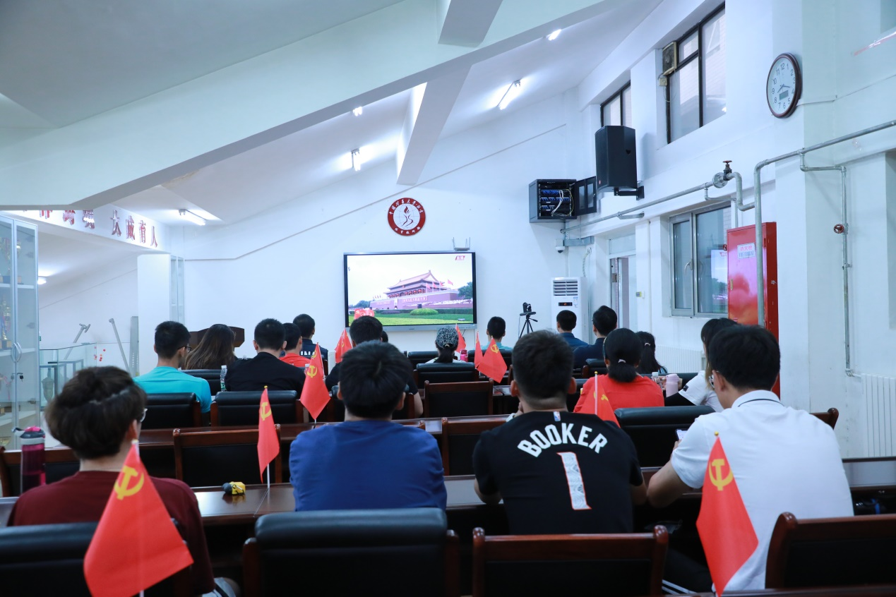 7月1日,庆祝中国共产党成立100周年大会在天安门广场隆重举行。中共中央总书记、国家主席、中央军委主席习近平发表了重要讲话。体育教研部直属党支部组织全体党员师生集中观看现场直播盛况,认真聆听习近平总书记的讲话,满怀喜悦的心情庆祝党的生日,共同见证伟大祖国的繁荣与富强。
