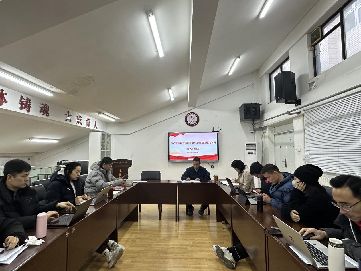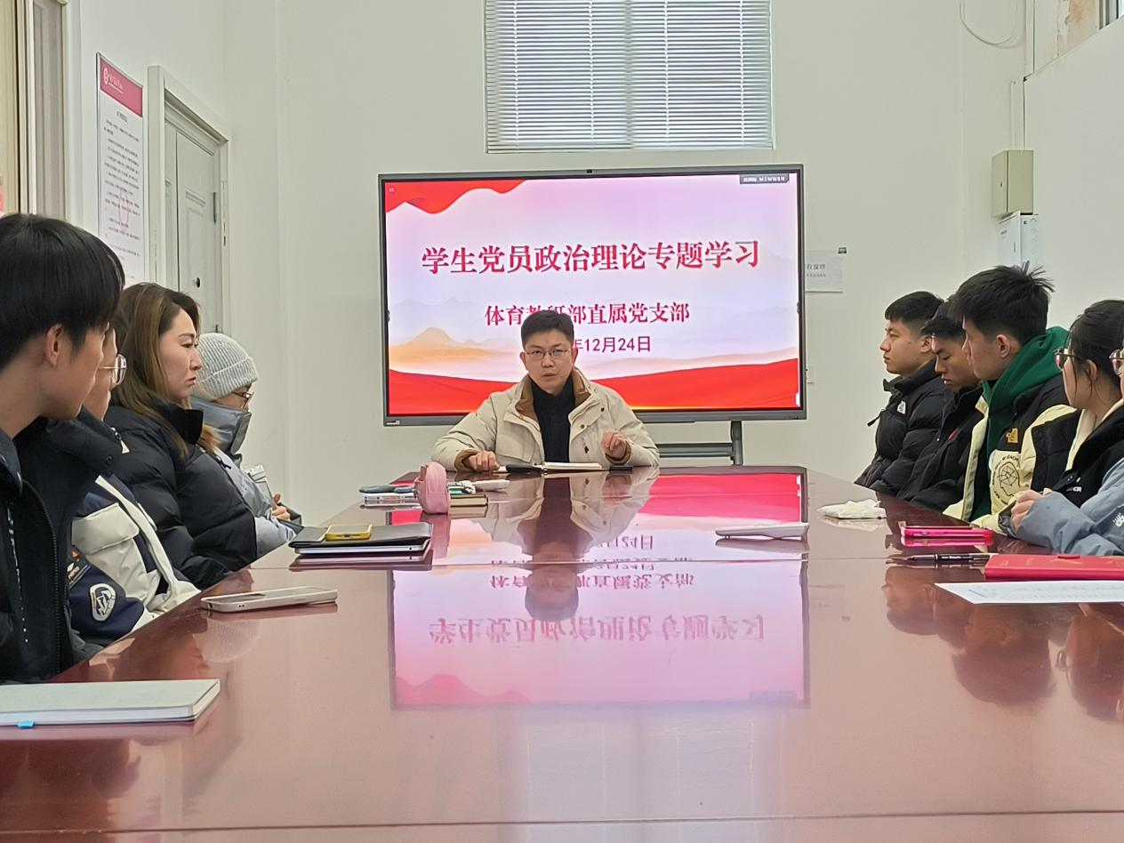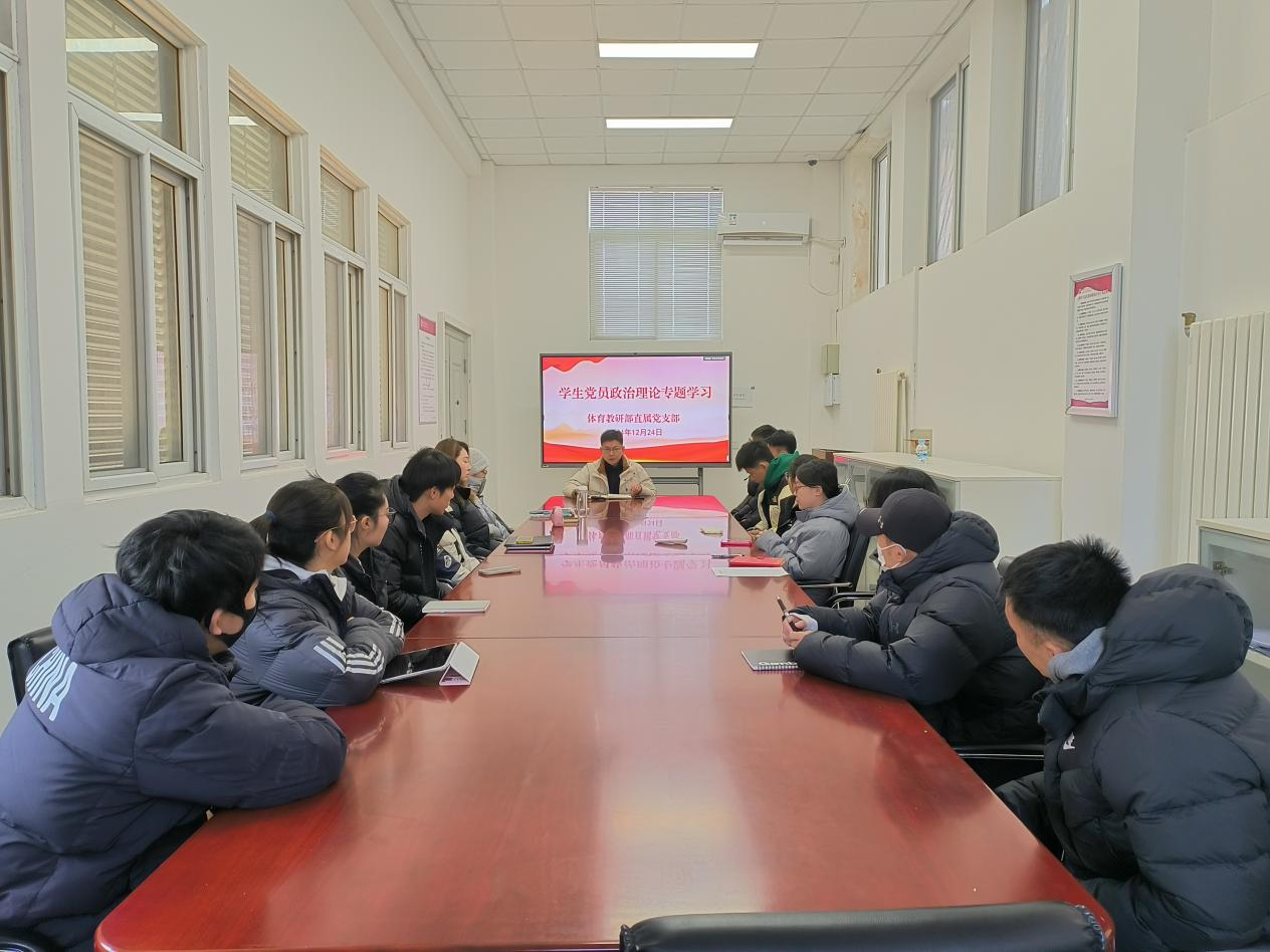 12月24日上午,体育教研部直属党支部组织全体教职工和学生党员开展思想政治理论专题学习。此次学习以教职工专题学习和学生党员专题学习两组分别开展。教职工专题学习习近平文化思想学习要点,由直属党支部副书记、教研部主任杨三军领学;直属党支部书记谢均岩以《深入学习贯彻习近平总书记关于就业工作的重要讲话精神 以毕业生高质量充分就业推动学校高质量发展》为题带领全体学生党员进行学习。