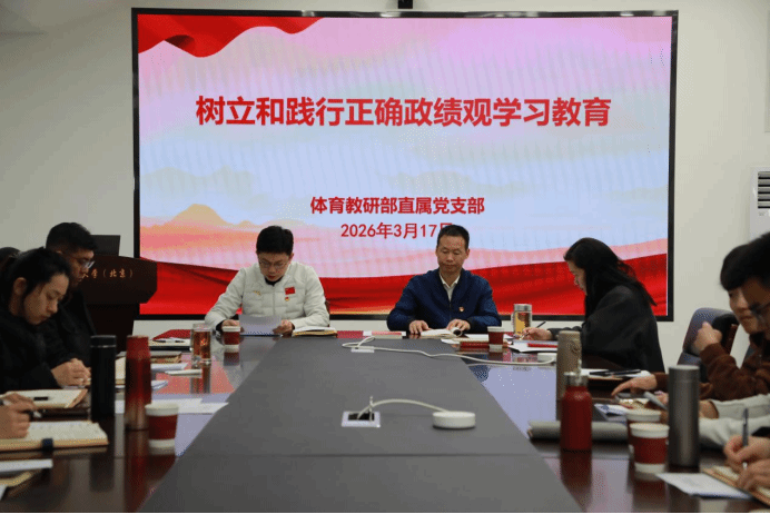 3月17日上午,体育教研部直属党支部组织开展树立和践行正确政绩观学习教育活动,全体师生党员参加学习。