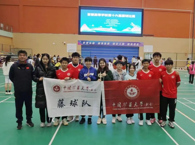 在男子藤球比赛中,我校学生于百恒、宋嘉珺、李旭东组队出战,在首战惜败中国政法大学开局不利的情况下,以大比分2:1逆转战胜华北电力大学,小组出线进入八强。在八进四比赛中,由于首次参赛经验不足惜败北京工商大学,最终以大比分2:0战胜中国人民大学获得第七名。