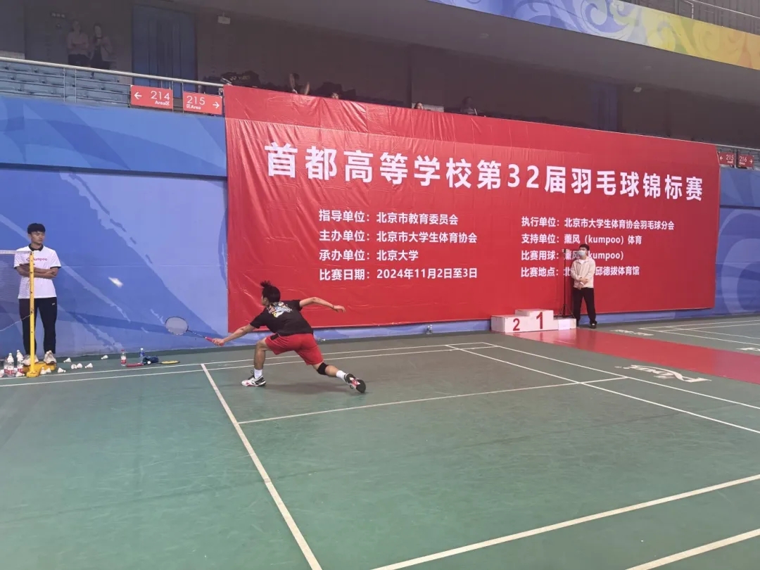 2024年11月2日至3日,首都高等学校羽毛球锦标赛(单项赛)在北京大学邱德拔体育馆展开激烈的角逐。我校羽毛球队在指导教师赵伟科,教练方睿健老师的悉心指导下,派出了一支由8名男运动员和4名女运动员组成的12人队伍,分别参赛甲组、乙组和丙组。