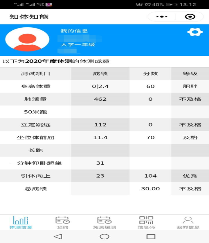 3.测试完成后可以在微信中搜索“知体知能”小程序,及时查询测试成绩,具体操作见附件1。