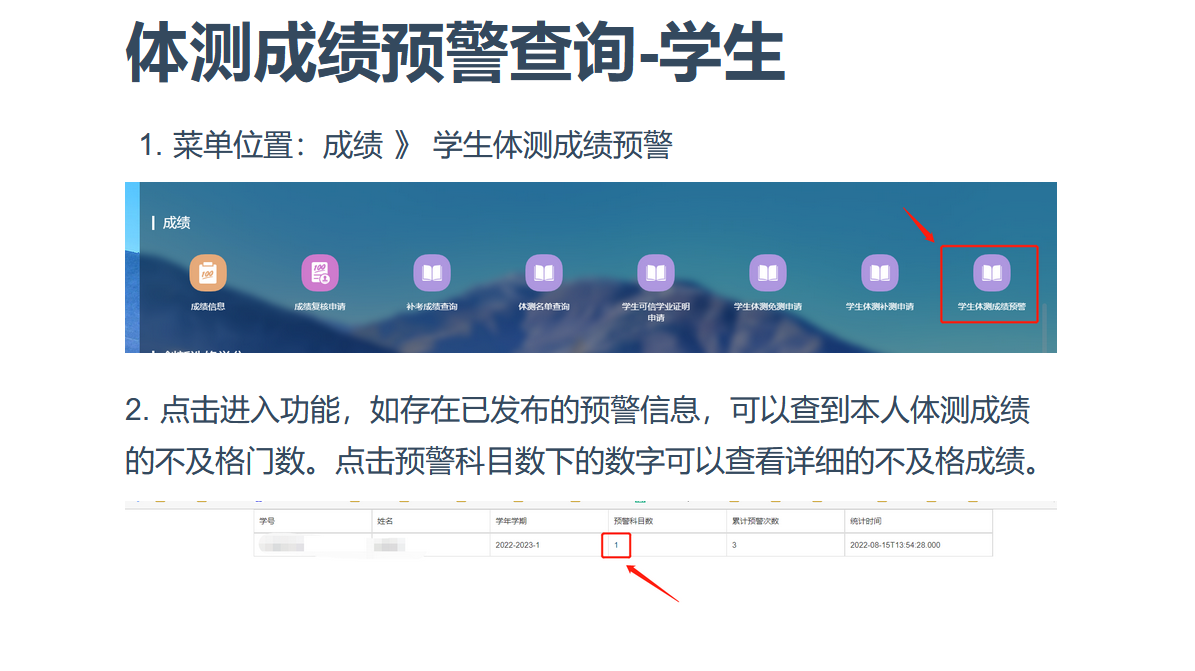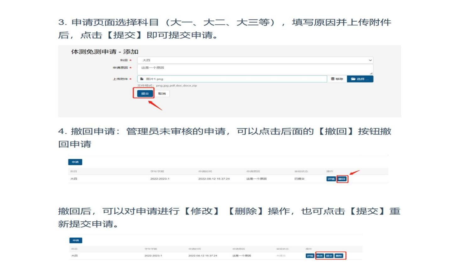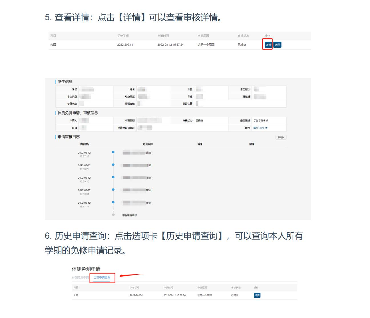 2.教务系统免测申请,往年不及格体测成绩补测申请、体测预警查询操作步骤