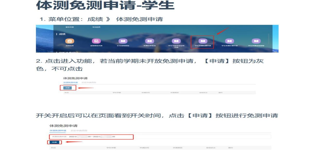 教务系统申请免测,往年体测成绩不及格补测操作步骤