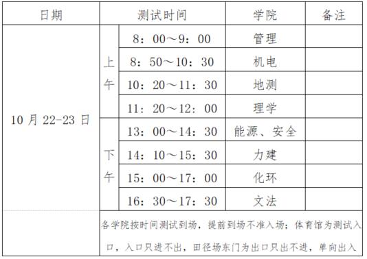 补测时间:10月10日-14日(缓测或总分60分以下,体育课上课时间随堂补测)