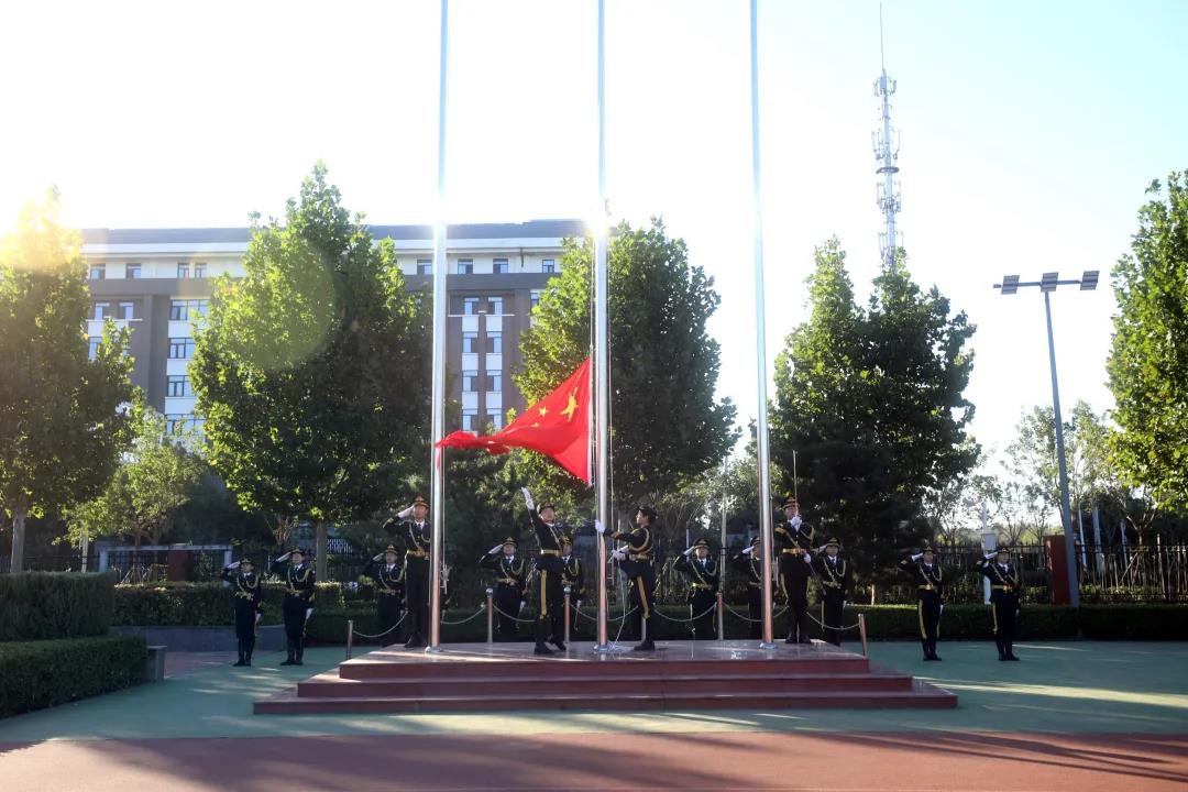 上午8:00,王忠强宣布运动会开幕。伴随着激昂的运动员进行曲,国旗护卫队护送五星红旗庄严入场,刀旗队、裁判员代表队、各学院学生运动员代表队依次列队入场。各方阵步伐坚定、口号嘹亮、激情满怀,展示了矿大2021级新生昂扬向上的精神面貌。随后,升旗仪式举行,雄壮的国歌声中,五星红旗冉冉升起,在场师生行注目礼。