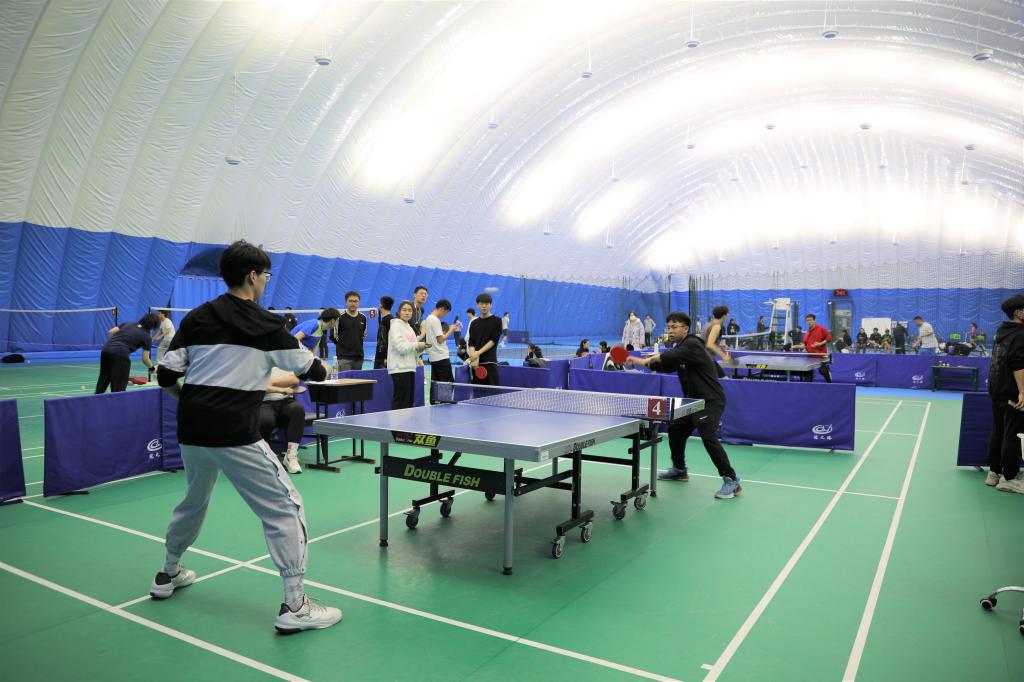 乒乓球联赛,同学们踊跃报名,各个学院的选拔也非常激烈。最终两校区共18支代表队90名运动员参赛。历经两周的激烈争夺,沙河校区机电学院代表队、力建学院代表队、安全学院代表队和学院路校区机电学院代表队、安全学院代表队、地测学院代表队分别以第一、二、三名的成绩出线。6支出线队伍实力强劲,在气膜馆中为我们带来了一场精彩绝伦的国球盛宴,最终安全学院沙河校区代表队获得冠军、机电学院学院路校区代表队获得亚军,地测学院学院路校区代表队获得季军。