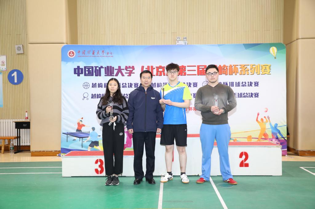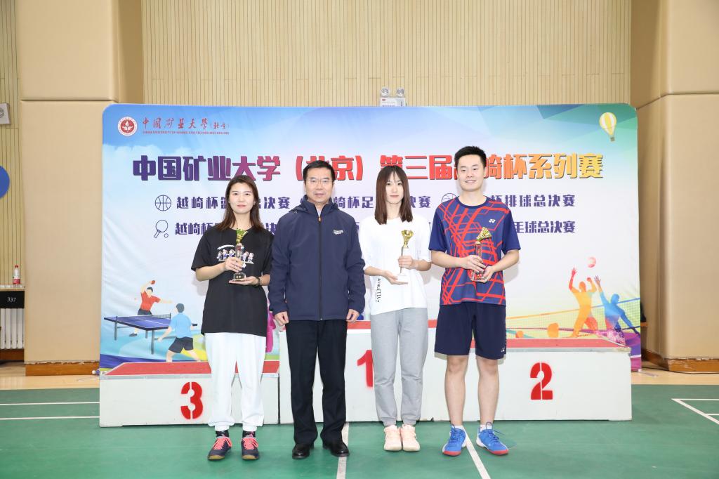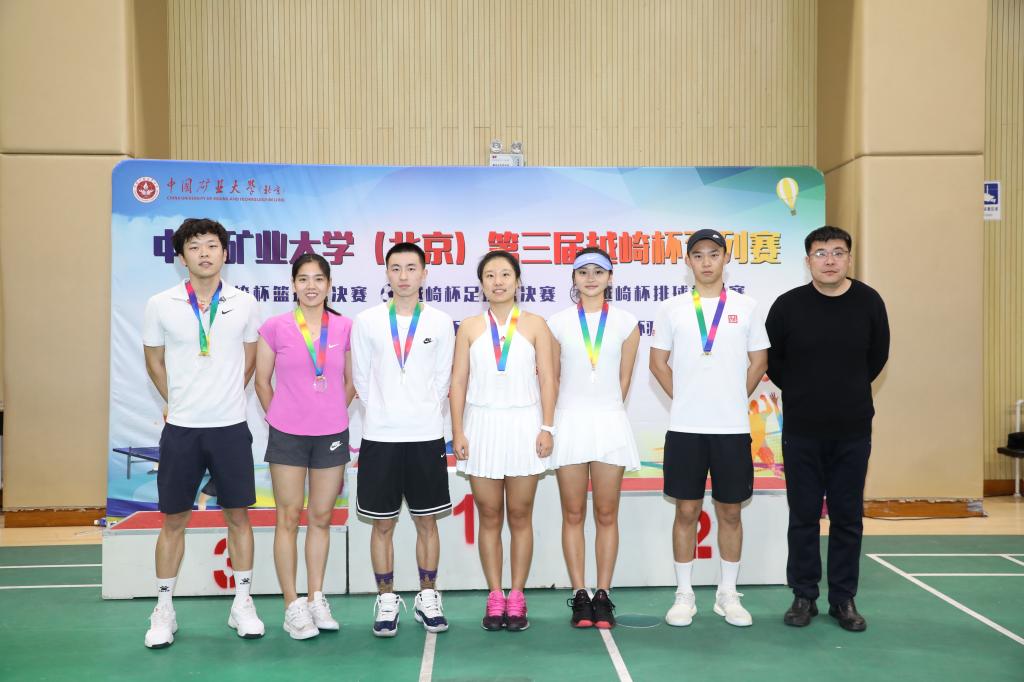 网球联赛,学院路校区和沙河校区各学院的爱好者踊跃报名,历经1个多月激战,共有4个组别60名运动员参赛,经过24场激烈的比赛,两校区的23名运动员成功突出重围,会师于总决赛。比赛正式开始,运动员们迅速进入状态,多次积极进攻,经过激烈角逐,专业组女单曾辰、男单吴崧豪,普通组女单杨晓玲、男单李栋鋆四名运动员一路过关斩将,最终获得中国矿业大学(北京)第三届越崎杯网球比赛对应组别冠军;专业组女单冉鸿宇、男单陈嘉航,普通组女单崔伊丹、男单苗寒青获得亚军;专业组女单郭彤彤、男单王栋辉,普通组女单肖璐璐、男单李立高获得季军。