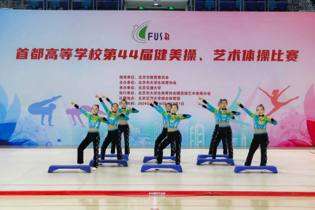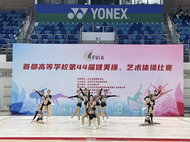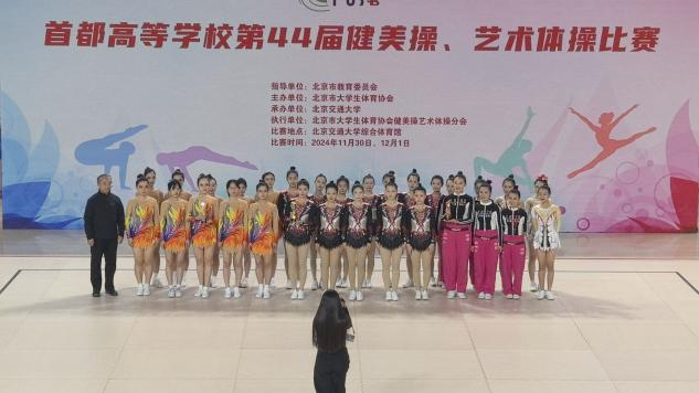 12月1日,2024年首都高等学校第44届健美操、艺术体操比赛在北京交通大学体育综合馆举行,来自清华大学、北京大学、北京师范大学等36所高校,900余名运动员参加了此次比赛。经过激烈角逐,我校健美操队获得乙组-健美操技能等级规定套路-初级冠军、乙组-健身舞蹈规定动作第五名、乙组-有氧踏板规定动作第五名、乙组团体总分第四名。