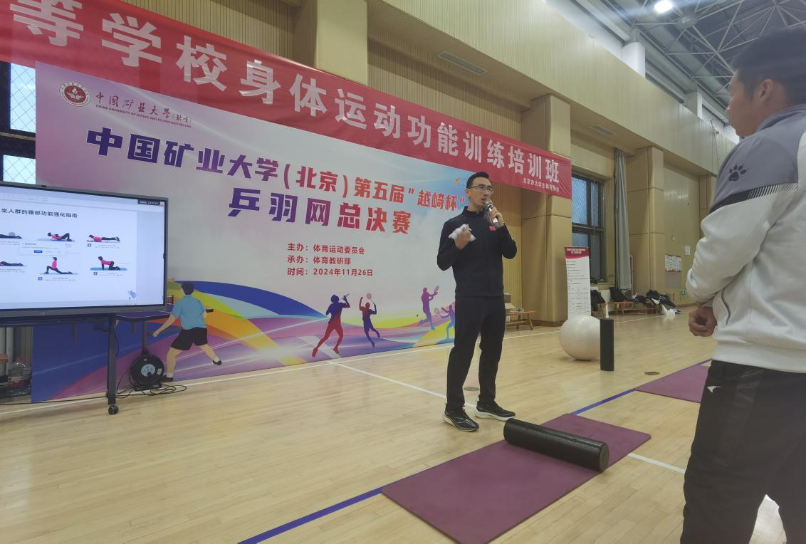 为贯彻落实党的二十大精神,促进竞技体育与大众健康的深度融合,积极探索健康体适能有效提升路径,加快体育教师专业水平发展。11月30日,由北京市大学生体育协会主办,健康体适能分会执行,中国矿业大学(北京)承办,北京冠超力健康科技集团股份有限公司协办的首都高等学校身体运动功能训练培训班在中国矿业大学(北京)学院路校区成功举办。