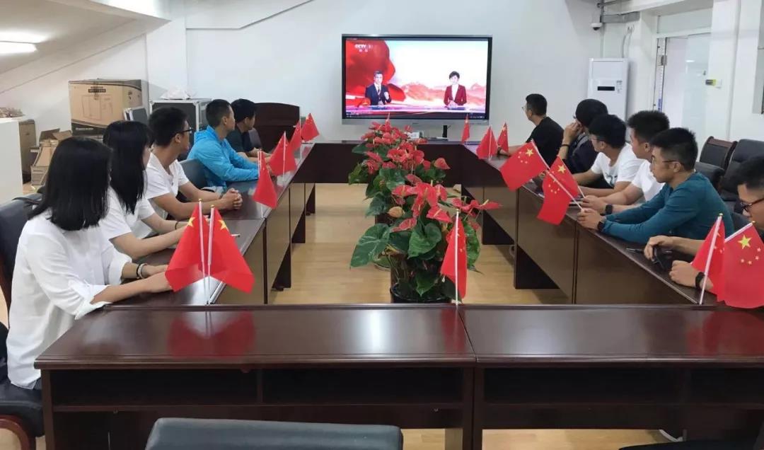 全体师生聚精会神聆听了习近平总书记发表的重要讲话:“全国同胞们,今天我们隆重集会,庆祝中国成立70周年,此时此刻,全国各族人民,海内外中华儿女,都怀着无比喜悦的心情,都为伟大的祖国感到自豪和祝福,习近平主席代表党中央,全国人大,国务院,全国政协,中央军委,为人民解放和富强的革命先辈和烈士表示怀念,各族人民和海内外的同胞表示热烈欢迎。70年前的今天,毛泽东同志向世界宣告中华人民共和国的成立,在这一伟大事件彻底改变了近100多年中国受人欺凌的局面,中国民族走向伟大复兴,70年来各族人民艰苦奋斗,取得了让世界瞩目的成就,中国依然屹立在东方,没有任何力量可以阻挡中国人民和中华民族的前进步伐。前进征程上,我们要坚持中国共产党的领导,坚持人民主体地位,坚持中国特色社会主义道路,不断满足人民对美好生活的向往,不断创造历史伟业,前进征程上,我们要坚持一国两制,保持香港和澳门长期繁荣稳定,为实现祖国统一而奋斗。前进征程上,我们要坚持和平发展的道路,奉行互利共赢的开放战略,继续推进人类命运共同体,中国人民解放军和武警部队坚决维护国家主权和利益。中国的昨天已经写在人类的史册上,中国的今天正在创造,不忘初心牢记使命,继续把我们的人民共和国巩固好,发展好。继续为实现两个100年奋斗目标,继续为实现中华民族伟大复兴而奋斗,伟大的中华人民共和国万岁。伟大的中国共产党万岁。伟大的中国人民万岁。”