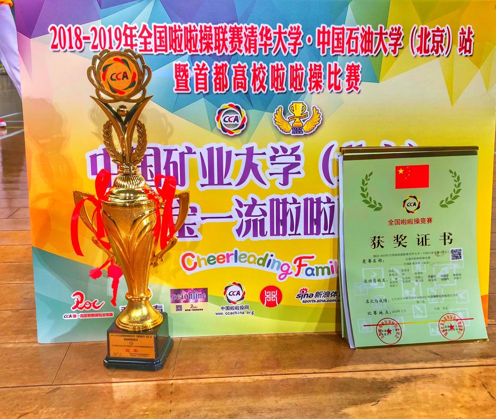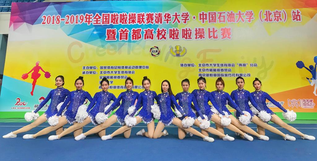 11月17-18日,2018-2019年全国啦啦操联赛清华大学·中国石油大学(北京)暨首都高校啦啦操比赛在清华大学体育馆举行。我校健美操队在刘一老师的带领下,赛前精心编排、积极准备、刻苦训练,赛场上,队员们以灵动的舞姿、整齐的动作、完美的姿态,充分展现了矿大学子的青春活力,最终在强手如云的队伍中脱颖而出,获得公开青年丙组北京市高校舞蹈啦啦操街舞规定动作第一名、公开青年丙组集体花球自选动作第三名。