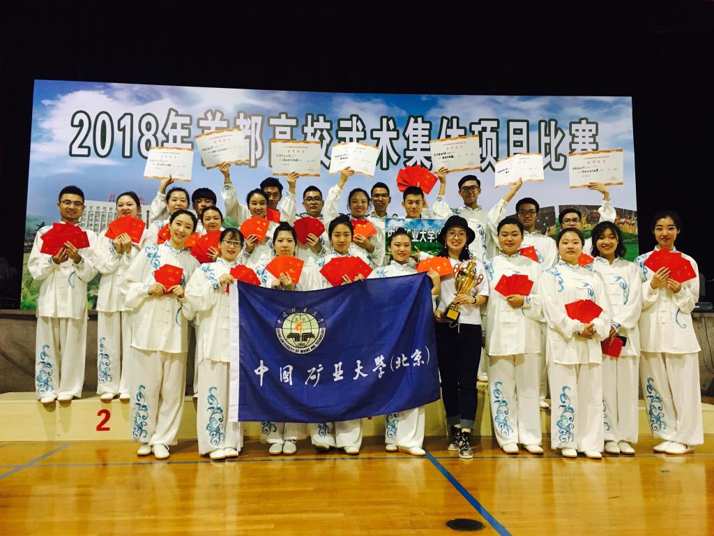 6月2日,由北京市大学生体育协会主办的“2018年首都高校武术集体项目比赛”在北京林业大学田家炳体育馆隆重举行。共有21所高校武术代表队参赛,我校武术队在教练员杜俊儒老师的带领下,参加了初级拳、24式太极拳、32式太极剑、太极扇、其它太极拳五个集体大项的比赛,经过一天的激烈角逐,最终获得四项一等奖、三项二等奖和团体总分第二名的优异成绩。