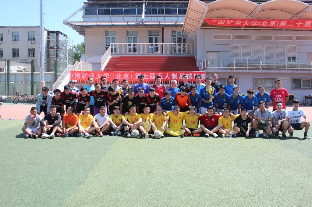 为推动校园“阳光体育”的开展,丰富师生的业余文化生活,5月29日,由体育系主办的第七届五人制足球赛在学院路足球场落下帷幕。作为我校传统的体育赛事,历经七载,深受广大师生欢迎,本次比赛全校共有18支球队、126人参赛,在历经15天40场比赛的激烈角逐后,最终研究生一队勇夺冠军,力建一队摘得亚军,资源一队荣获季军。研究生一队王广强、资源二队喇应虎获得“优秀运动员”;地测学院的阿迪力、化环学院的王涵锐获“优秀裁判员”;资源一队的王东皓以12粒进球荣膺“最佳射手”称号。
