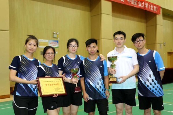 本网讯 5月14日,由北京市大学生体育协会主办、中国矿业大学(北京)承办的2017年首都高校第九届大学生毽球比赛在我校体育馆举行。本届比赛共有来自北京大学、清华大学、北京体育大学共41支代表队300多名运动员参加。为确保比赛顺利进行,我校根据赛事的要求,对竞赛、裁判、场地、器材、安保等方面进行了精心准备和周密安排,各项工作精益求精,确保比赛圆满成功,受到了赛会的一致好评。我校代表队获得男子双打冠军、男子三人赛第三名、男子单打第四名、女子三人赛第五名的好成绩。