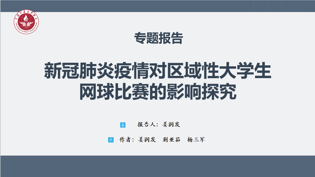2021年3月27日,由中国大学生体育协会举办的第十五届中国高校网球科研论文报告会(以下简称“科报会”)顺利闭幕。本届科报会,体育教研部师生凭借着严谨的学术研究态度、扎实的教育研究能力和不断学习的刻苦钻研精神,最终在科研团队评比中,被评为“科研集体奖”,打开了新局面。