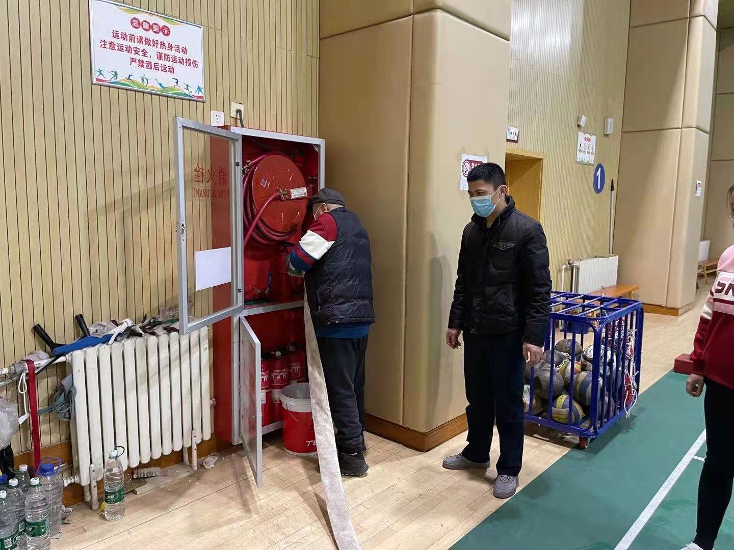 保卫处安全科科长赵文锋带队对学院路校区和沙河校区体育场馆消防设施进行了全面检查。保卫队长赵磊和中队长郑亚飞现场对体育场馆工作人员进行了消防安全知识培训。本次活动严格按照考核要求进行全流程培训,对火灾隐患查找、人员疏散、灭火器使用等消防知识进行了深入浅出的讲解,接着对灭火报警操作、灭火器“灭真火”、消防栓“出真水”实践操作培训,最后体育场馆工作人员对规范使用灭火器、消防栓、水带进行了实操考核。最终体育场馆工作人员以标准的回答和临危不乱、有条不紊的实操全部通过消防安全考核。
