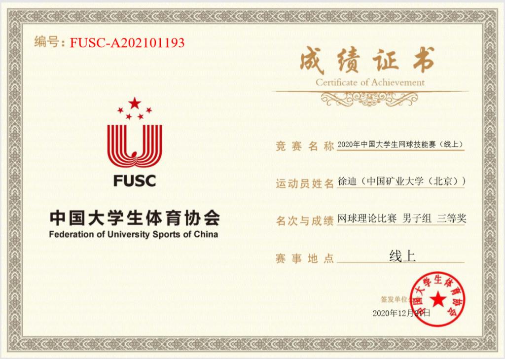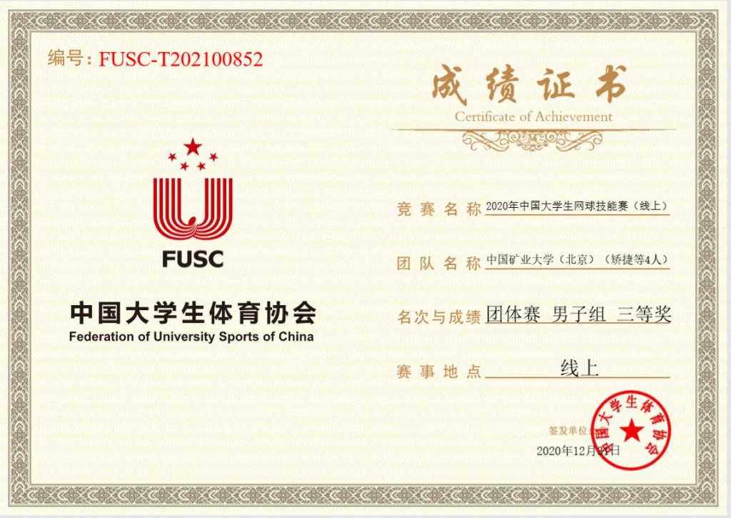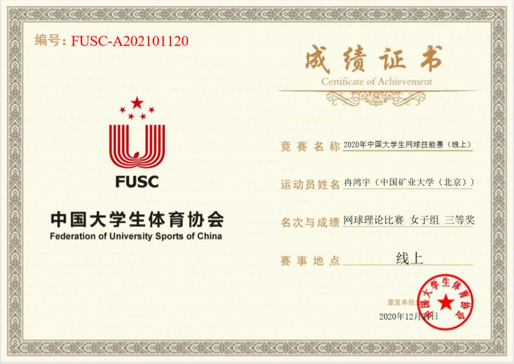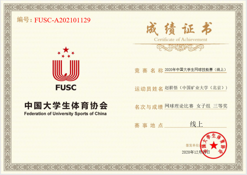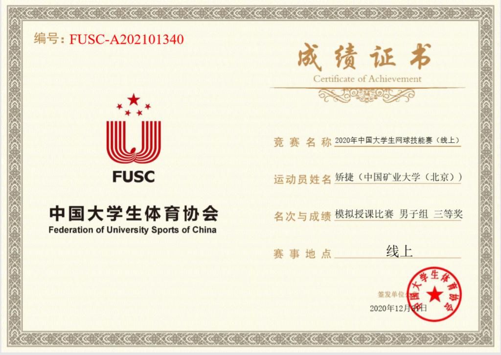 由中国大学生体育协会主办、中国大学生体育协会网球分会执行的“2020 年中国大学生网球技能赛(线上)”于2021年1月顺利结束。