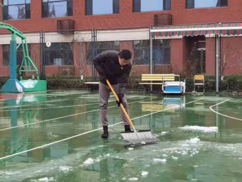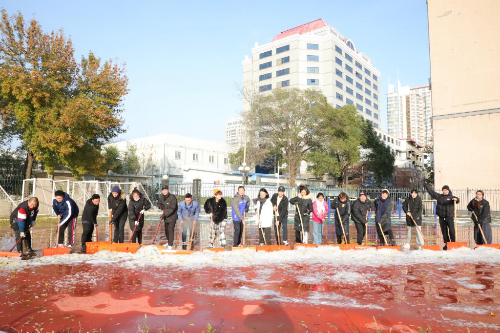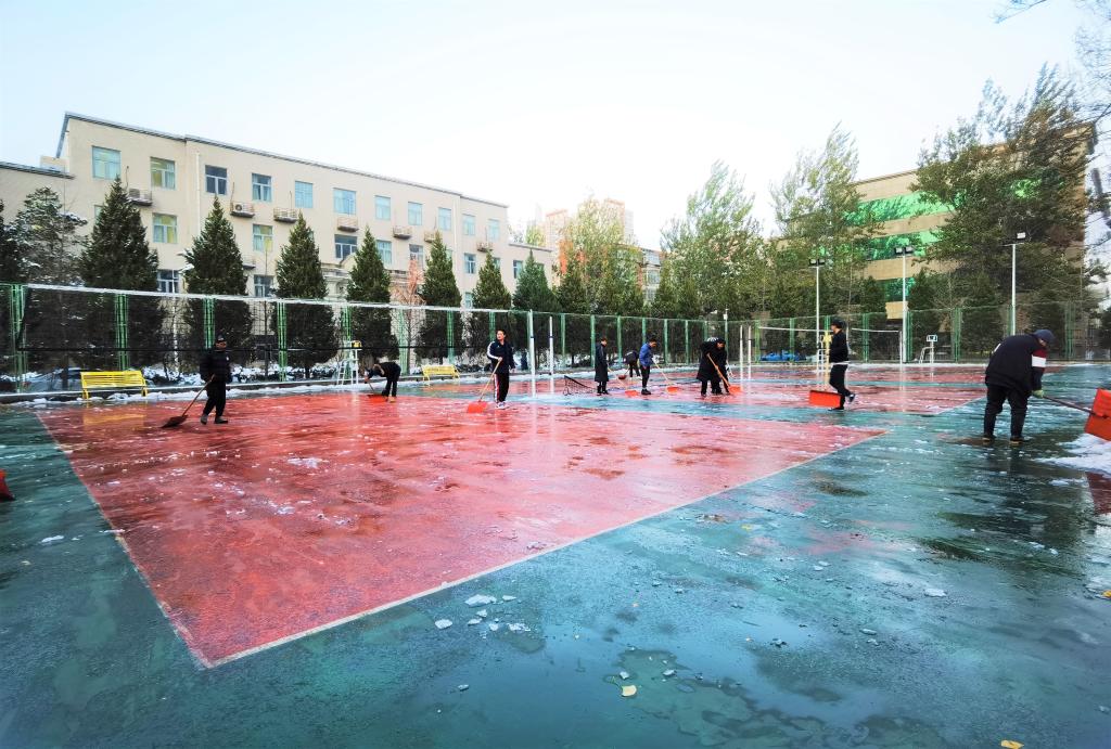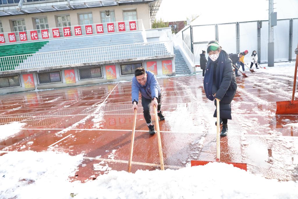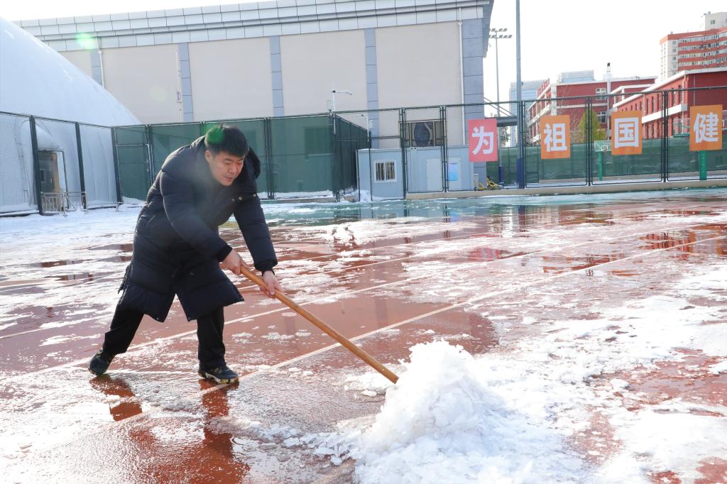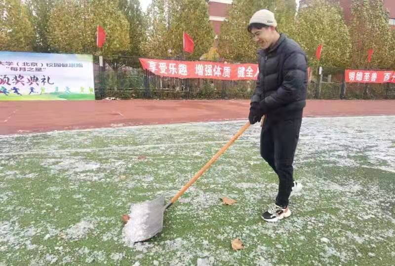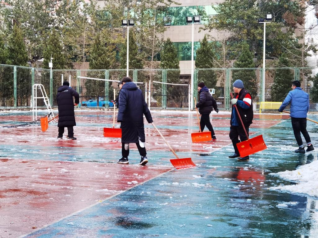 11月7日上午,体育教研部紧急行动,快速部署,吹响了志愿扫雪集合哨,号召体育教研部师生进行了体育运动场地清冰扫雪工作。