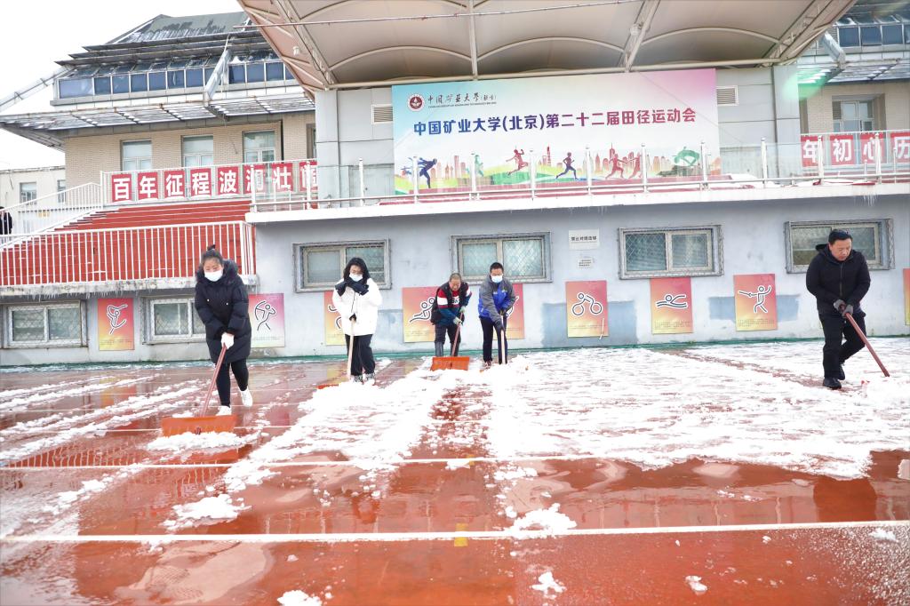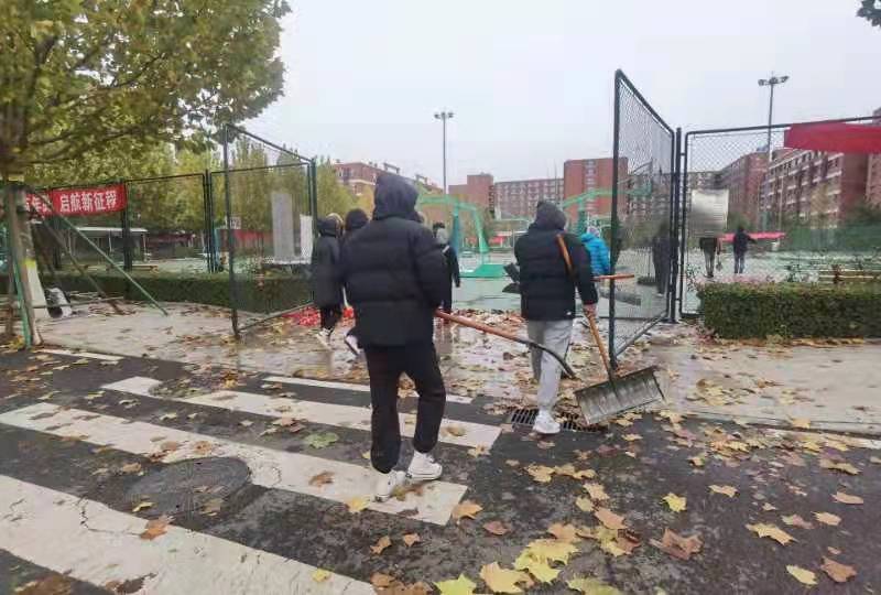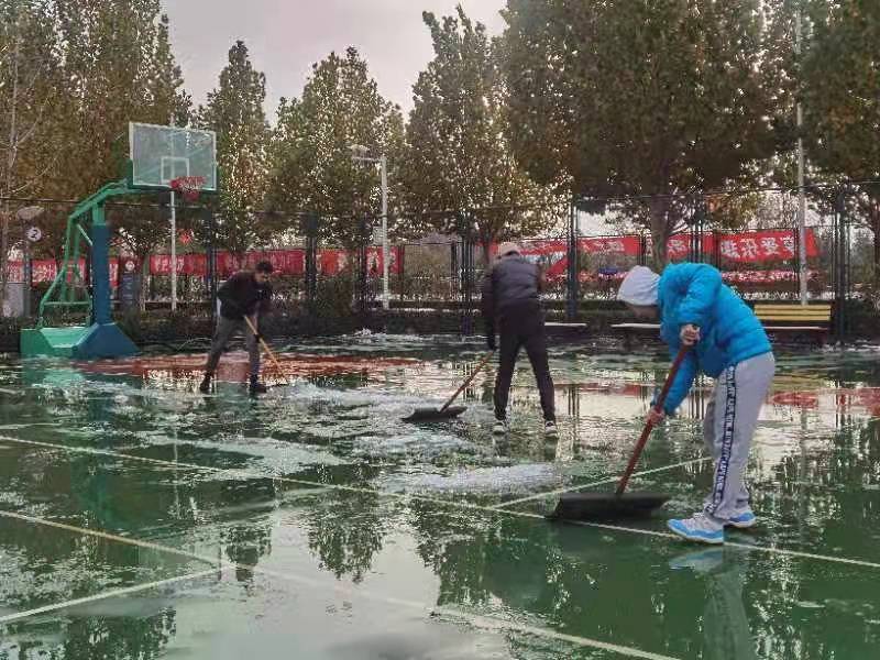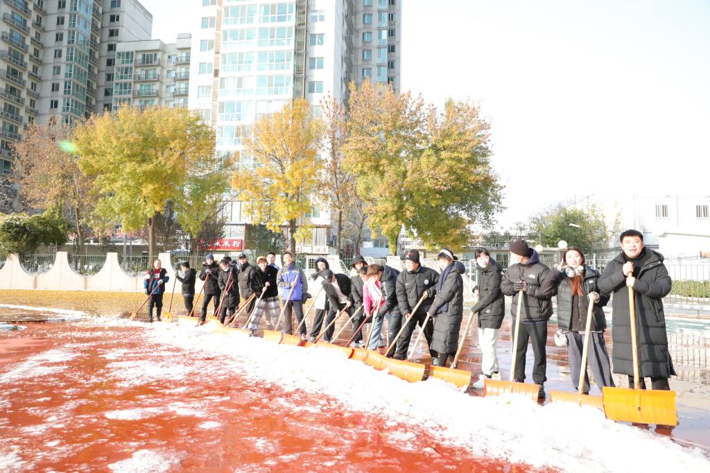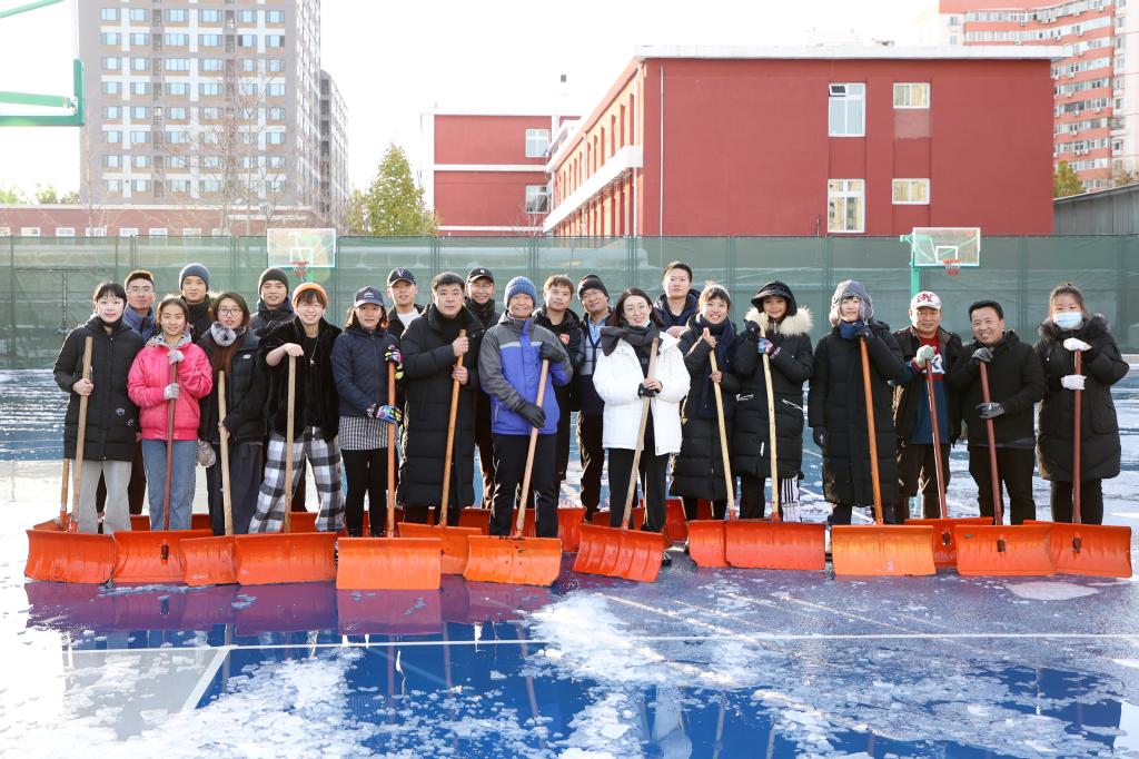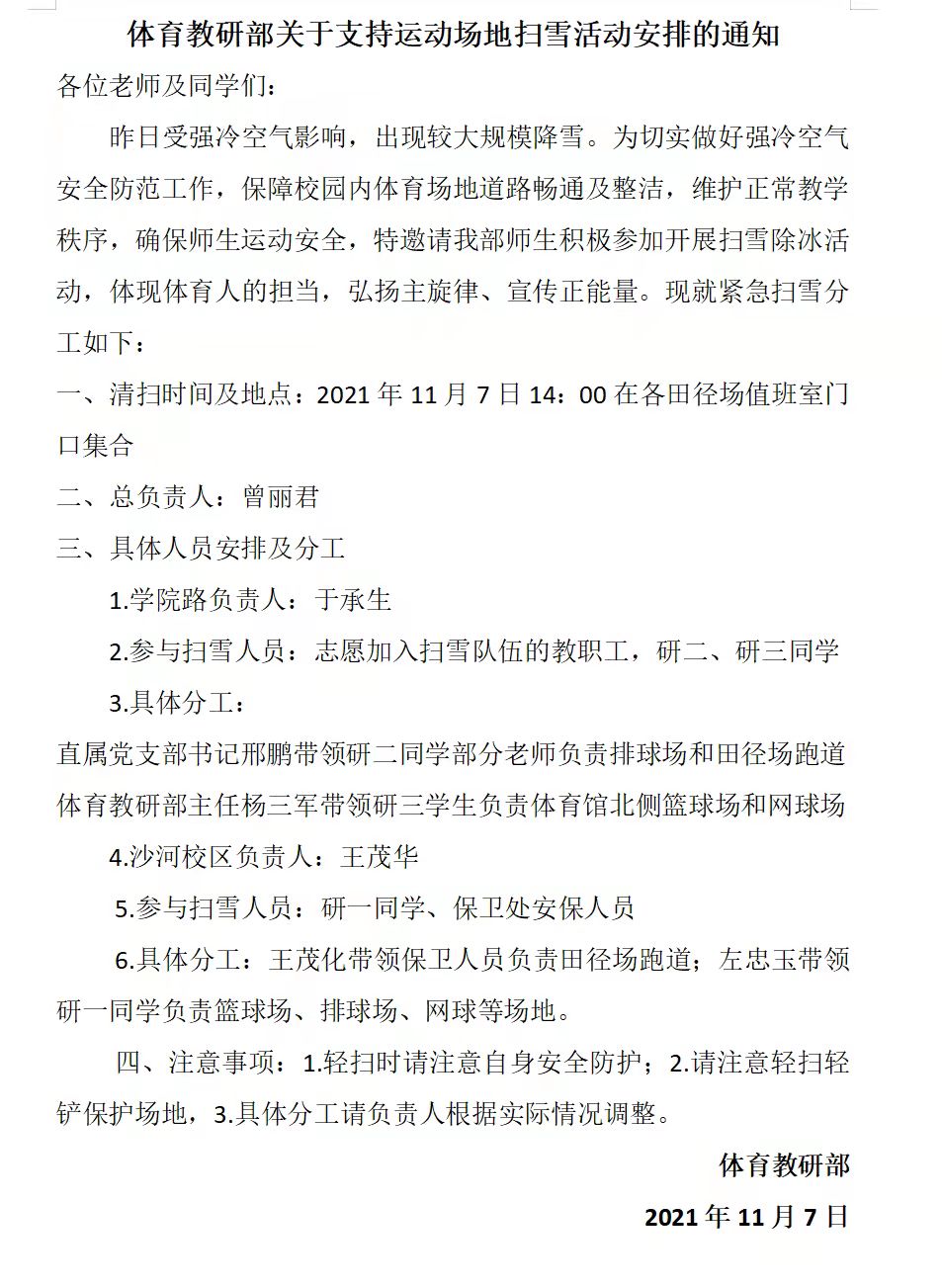 11月7日上午,体育教研部紧急行动,快速部署,吹响了志愿扫雪集合哨,号召体育教研部师生进行了体育运动场地清冰扫雪工作。