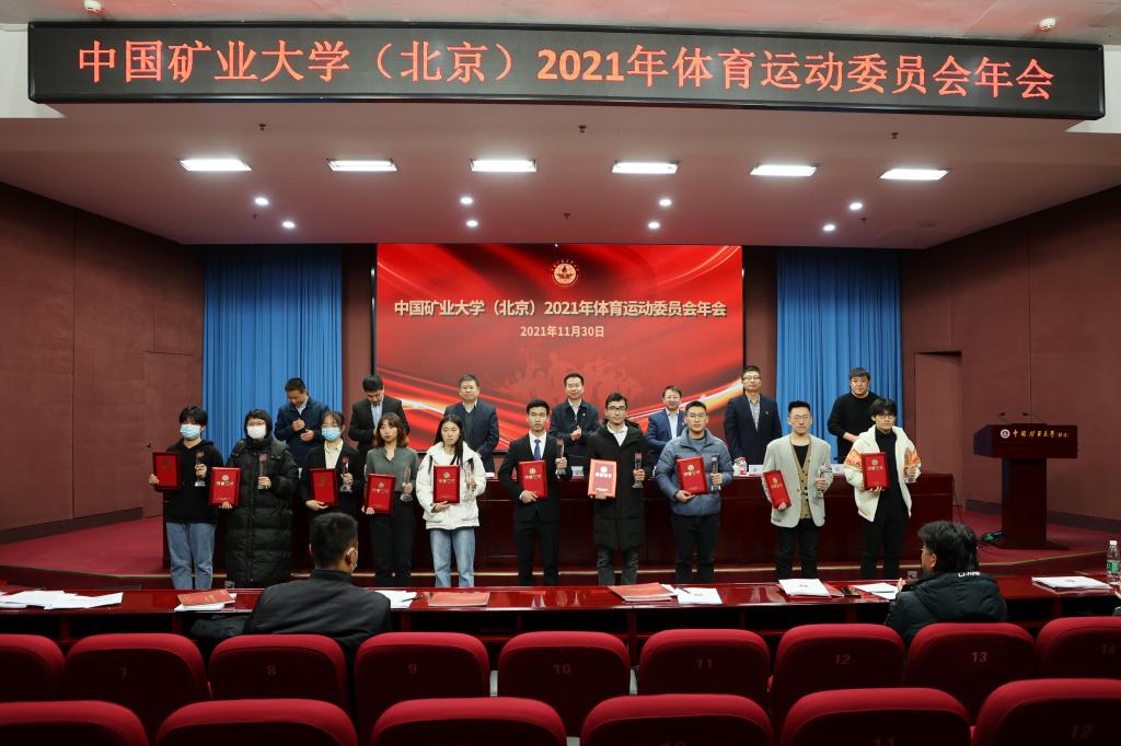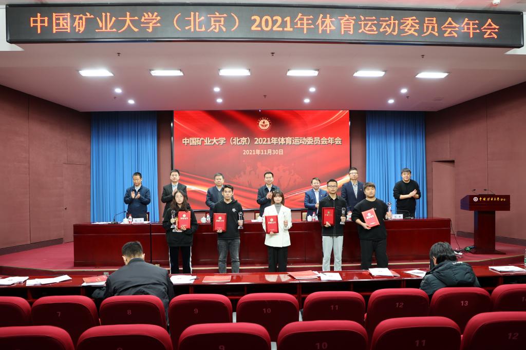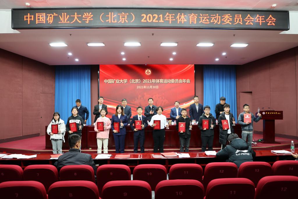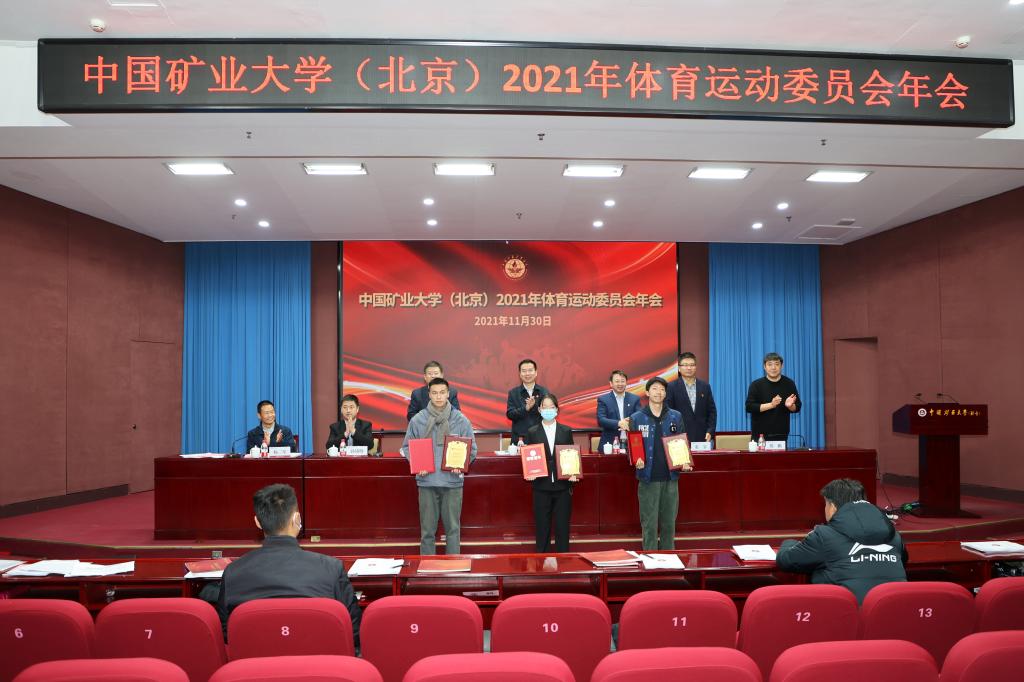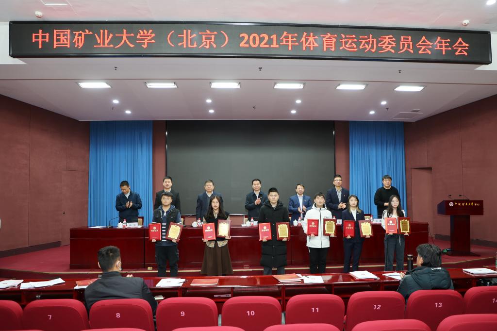 会议表彰了2021年体育工作学生优秀集体及优秀个人。教务处处长郭东明宣读年度体育先锋、优秀、优良班级名单,研究生院常务副院长徐志强宣读年度学生优秀体育干部名单,学生工作处处长安宇宣读年度体质健康测试优秀个人名单,校团委书记孙铭晗宣读年度体育优秀社团名单,体育教研部直属党支部书记邢鹏宣读年度校园健康跑之星名单。与会领导现场为获奖集体个人代表颁发奖牌和证书。