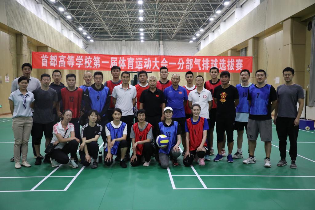 为深入贯彻首都高等学校第一届体育运动大会精神,促进首都高校一分部气排球竞技水平提升。9月4日,在我校体育馆举行了“首都高等学校第一届体育运动大会—分部气排球选拔赛”,6所高校气排球高手齐聚中国矿业大学(北京)为参赛席位展开较量。出席赛事的领导有:北京市大体协副主席、清华大学体育部刘波主任;一分部主任、北京信息科技大学体育部张世忠主任;北京林业大学体育部陈东主任;北京体育大学学校训练竞赛处许占鸣、张宏伟处长;一分部副主任,中国矿业大学(北京)体育教研部杨三军主任;中国农业大学体育教学部吴敏副主任。参赛成员来自一分部各高校的教师,大家以拼搏、进取、团结、活力的旋律,共同吹响迎接首届高运会的号角。
