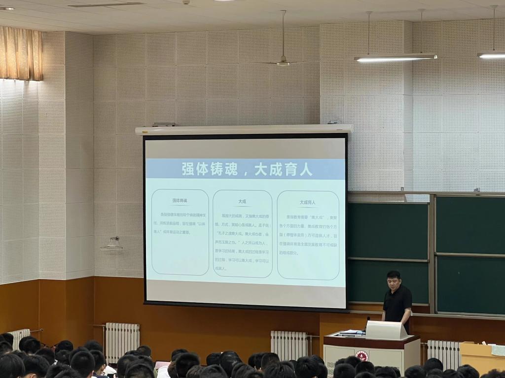 在课上,体育教研部老师讲授大学四年体育教学全覆盖的培养方案、学生体质测试相关政策、大学四年校园健康跑锻炼要求、学校群体活动介绍及本学期群体活动计划、往期运动竞赛、校园运动场馆、体育科学等非常全面而又丰富的内容。以服务学生全面发展、增强综合素质为目标,体育教研部以大学四年科学、宏大的体育规划助力学生在体育锻炼中享受乐趣、增强体质、健全人格、锤炼意志,培养德智体美劳全面发展的社会主义建设者和接班人。