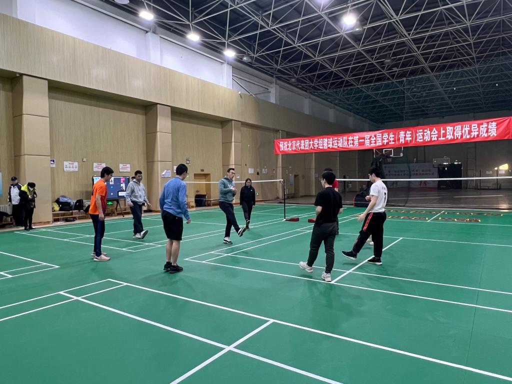 2023年1月9日,第一届全国学生(青年)运动会北京代表团毽球队首期队员集训在我校体育训练馆正式开始,共有来自清华大学、北京大学、首都体院、首都经贸、北京信息科技大学、北京城市学院、中国矿业大学(北京)7所高校21名运动员参加线下训练,40余名运动员线上参加训练。北京市大学生体育协会竞赛部主任刘铮、北京市大学生体育协会毽绳分会主席张世忠、北京市大学生体育协会毽绳分会秘书长赵东生、我校体育教研部主任、本届毽球队领队杨三军现场观看训练并指导,体育教研部综合办主任、竞赛主管曾丽君、竞赛负责人吴岩陪同。
