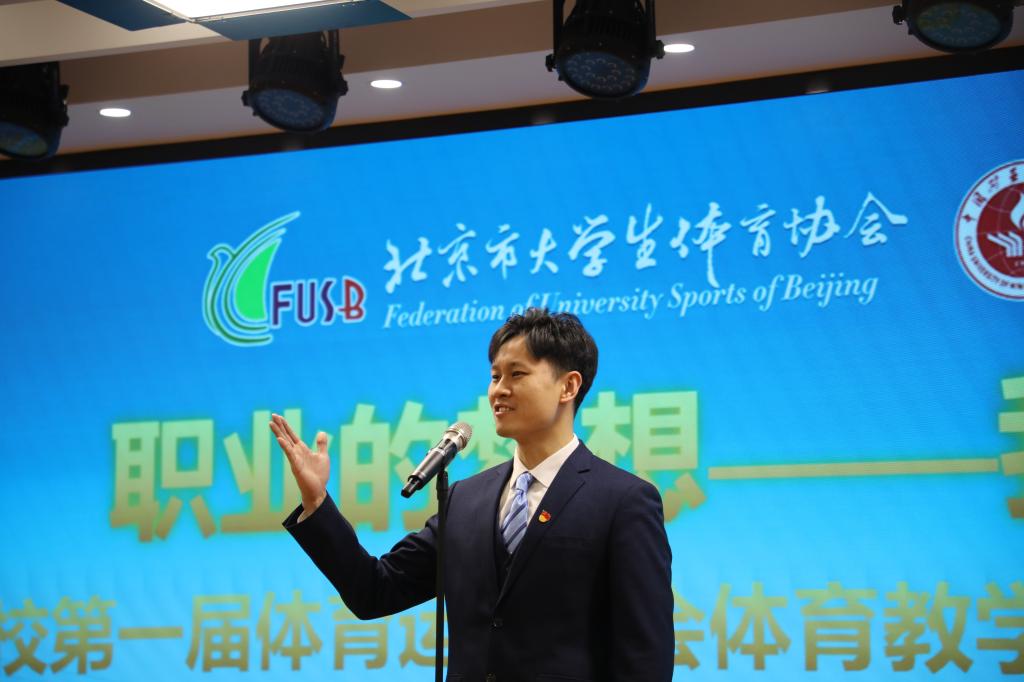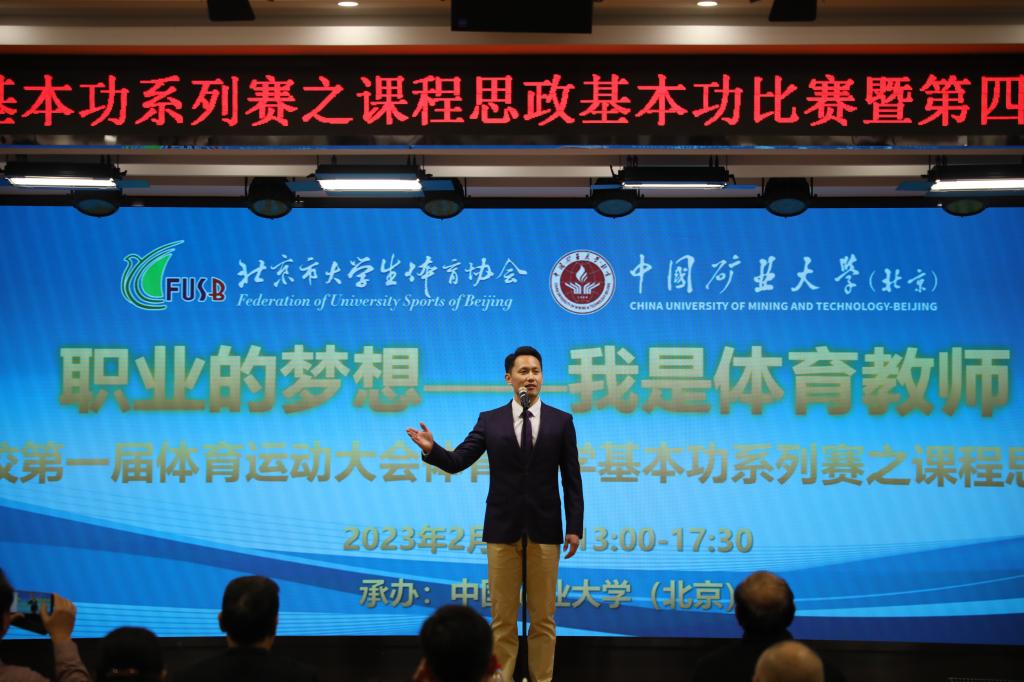 2月17日下午,由北京市教育委员会和北京市体育局主办,北京市大学生体育协会承办,首都高校第一届体育运动大会体育教学基本功系列赛之课程思政基本功比赛暨第四届“职业的梦想——我是体育教师”演讲比赛在我校福中苑报告厅隆重举行,共有来自92所高校由9个分部选派的27名选手参赛。