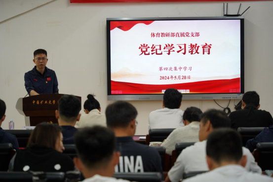 5月28日上午,体育教研部直属党支部组织开展党纪学习教育第四次集中学习,集中学习由直属党支部书记谢均岩主持,全体师生党员参加。学校党委第一巡察组有关同志到会指导。