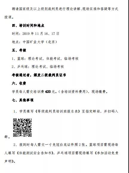 1、学员填写《等级裁判员培训班报名表》至指定邮箱,并扫码入群。