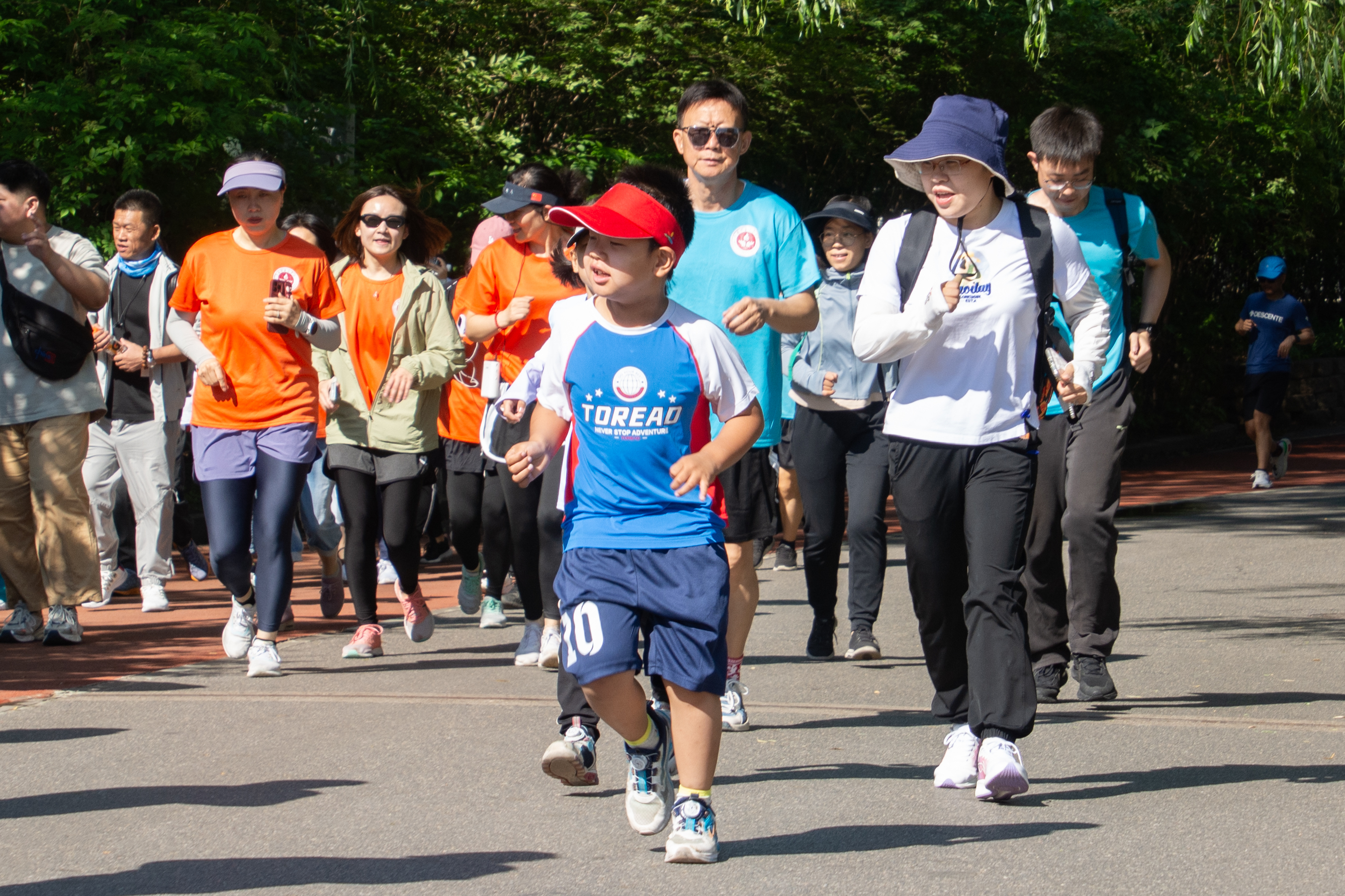 热身活动后,孩子们在爸爸妈妈的陪伴下踏上了奥森的跑道,迎着阳光,奋力奔跑,面对挑战,互相鼓励,体验拼搏与勇敢的乐趣。一路上,孩子们与家长们脸上洋溢着快乐的笑容,享受着跑步带来的乐趣,感受亲情与关爱。伴随着奔跑的身影和自信的步伐,孩子们与家长们携手冲过5公里终点,共同度过了一个充满意义的儿童节。老师们也纷纷表示这次活动让孩子们感受到了运动、挑战带来的快乐与自信,让自己的陪伴获得了更积极的情感。
