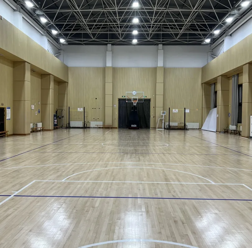 室内篮球与室内排球共用一片场地,按照国家标准比赛场地技术要求及环保要求建设,灯光充足,采用液压篮球架,地面采用木质地板,弹性较好,运动员打球时不易受伤。