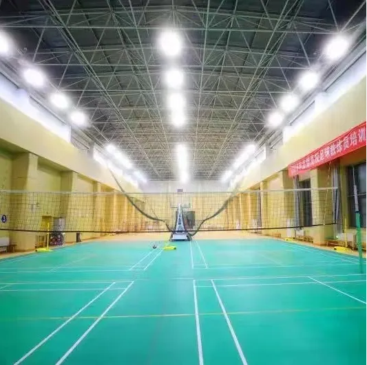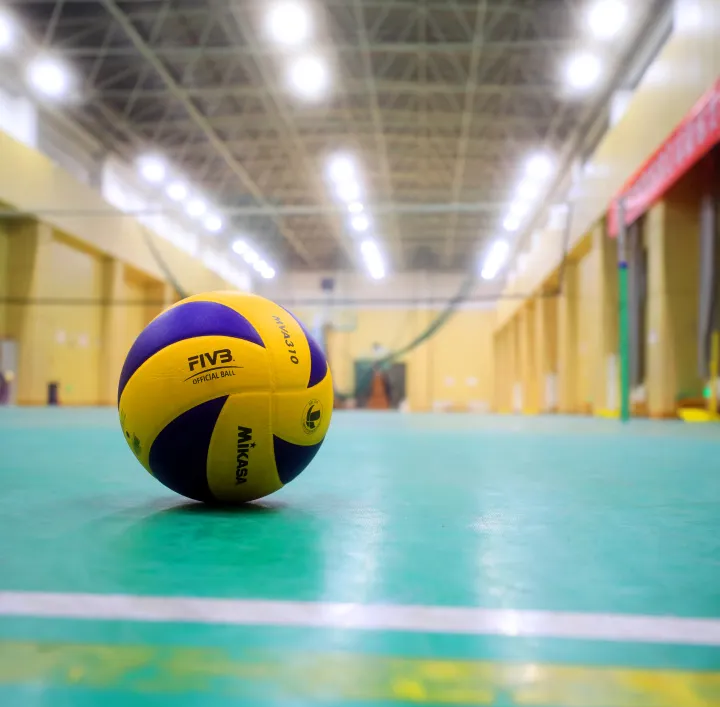 室内排球与室内篮球共用一片场地,按照国家标准比赛场地技术要求及环保要求建设,灯光充足,地面采用木质地板,弹性较好。